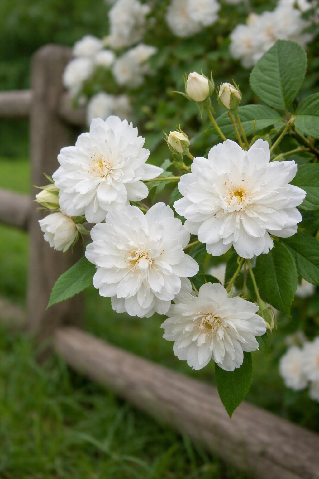 Snow Goose is valued for its flexible, arching canes and reliable climbing habit, making it easy to train along split rail fences, arbors, pergolas, or walls. Its healthy foliage and strong garden performance make it an excellent choice for gardeners seeking a refined white climber with a long flowering season.