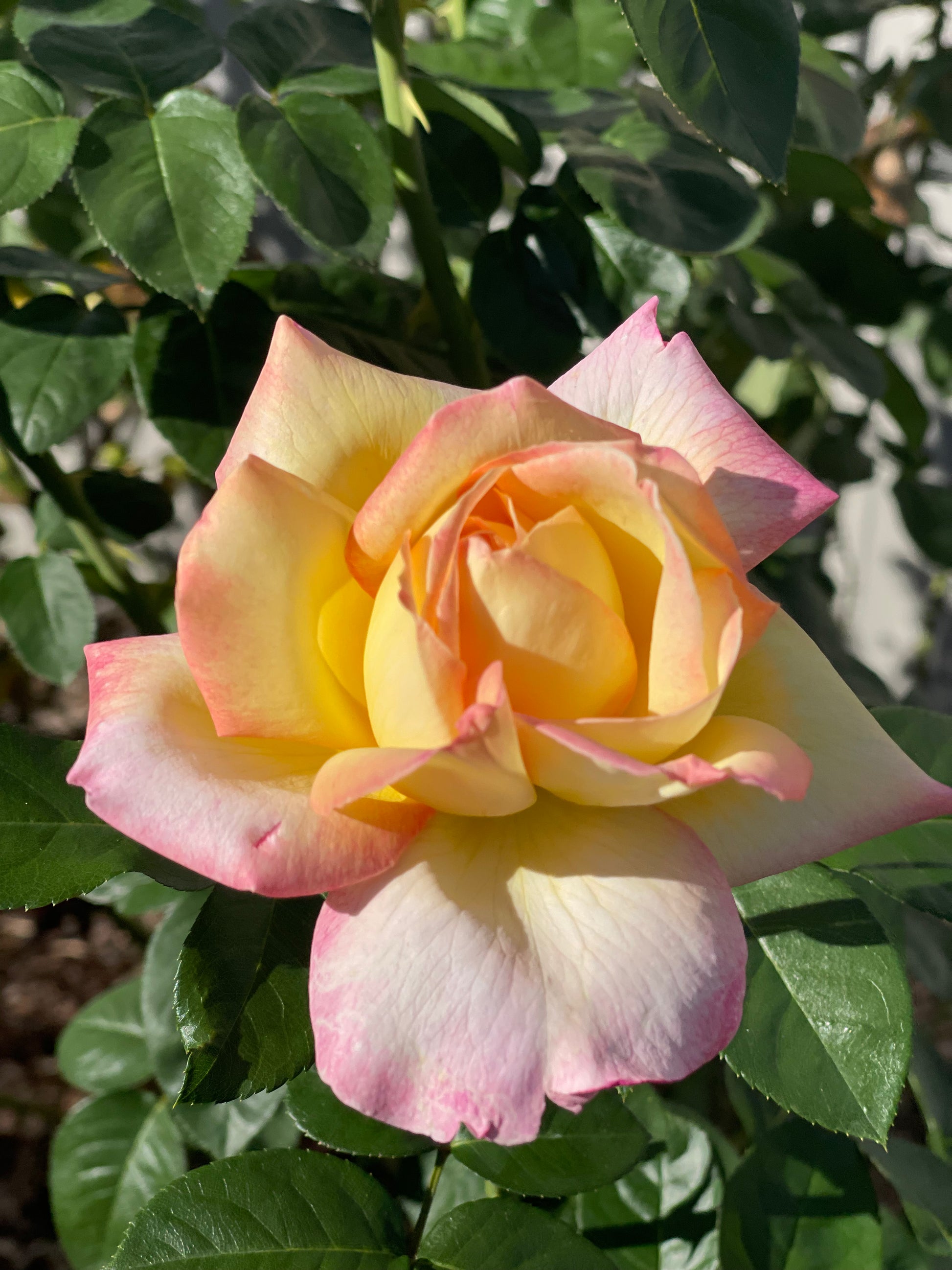 Description: The Peace Hybrid Tea Rose is one of the most celebrated roses in history, admired for its breathtaking beauty and graceful charm. This classic variety showcases large, creamy yellow blooms delicately edged in soft pink, often reaching up to 6 inches across. Each blossom is elegantly shaped with high-centered petals that unfurl in layers of pastel perfection. Known for its strong performance in the garden and its subtle, sweet fragrance, ‘Peace’ is a timeless symbol of hope and harmony, making it a treasured addition to any rose collection.